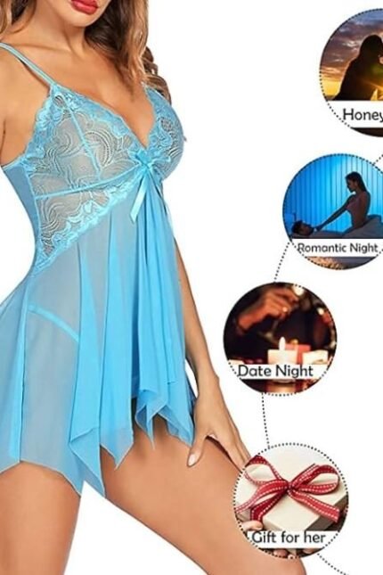 Dreamy Bliss – Sky Blue Lace Babydoll